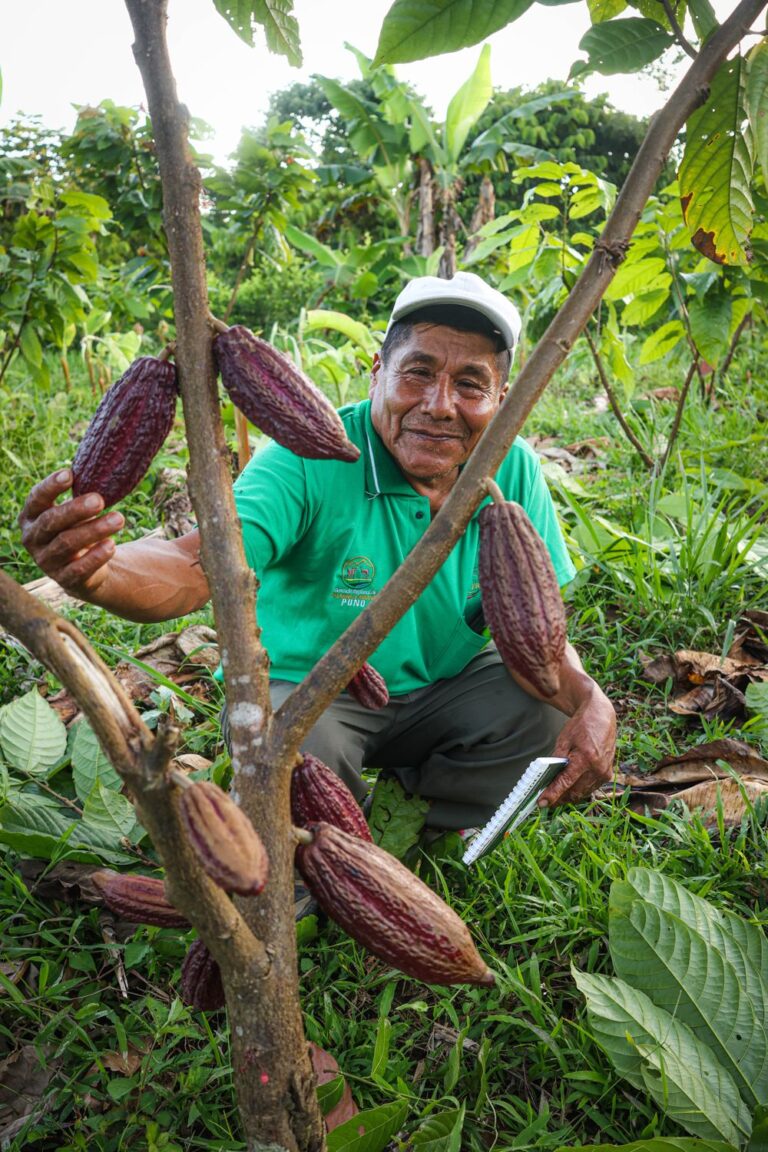 “Estoy interesado en el cultivo de cacao. Actualmente tengo media hectárea cultivada, aunque antes no sabía cómo manejarla correctamente. Ahora, al ver lo que se está haciendo en Madre de Dios, estoy convencido de que es posible mejorar mi producción. Aplicaré los conocimientos que estoy adquiriendo en esta pasantía para mejorar mi propia parcela”, menciona Estanislao Mayta Quispe, productor del Centro Poblado Victoria.